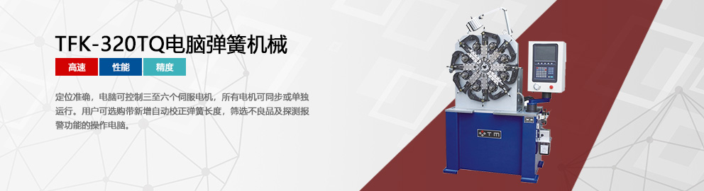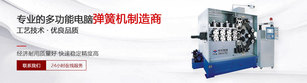 東莞市西田彈簧機械有限公司,位于美麗的珠江畔,中國最具魅力城市——東莞市,地理位置優越,交通方便。 東莞市西田彈簧機械有限公司是集彈簧設備研發、測試、制造、銷售于一體的民營科技企業,生產的電腦彈簧機型號有:TCK-208N/Y壓簧機、TCK-208B壓簧機、TCK-220A/226A壓簧機、TCK-235A/335A壓簧機、TCK-350A/550A壓簧機、TCK-580A壓簧機、TFK-320TQ/620TQ數控彈簧機、TFK-330/335TQ數控彈簧機、TFK-340/350TQ數控彈簧機等系列,彈簧機繞制的鋼線直徑為0.15-8.0毫米,可繞制拉簧、扭簧、壓簧、異形簧等各式彈簧......
